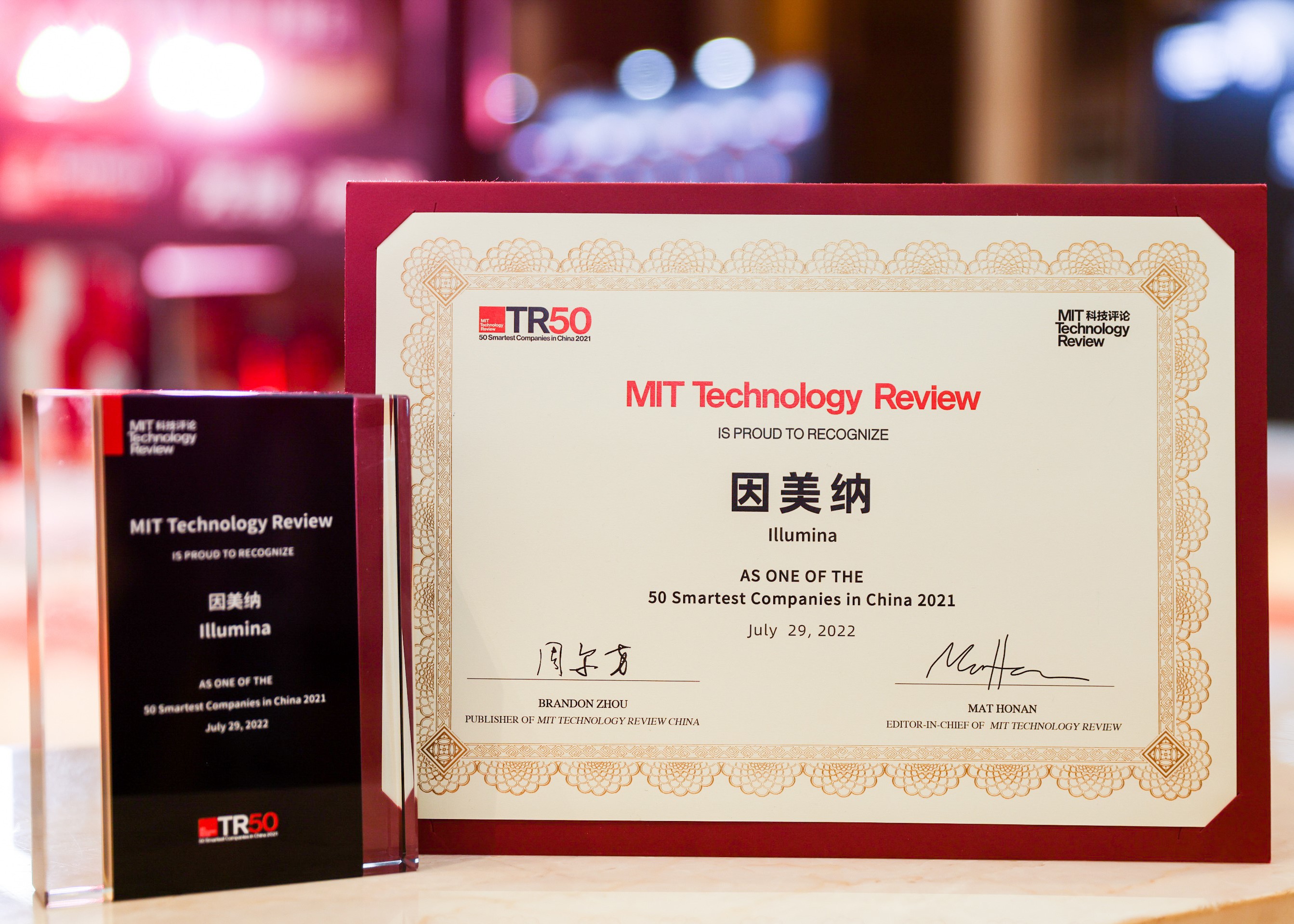 2022年7月29日,中国无锡——今日,《麻省理工科技评论》(MIT Technology Review)在无锡重磅揭晓2021年度 “50家聪明公司” (50 Smartest Companies,TR50)榜单,以“可持续未来”概念为导向,聚焦“在中国诞生的、由中国引领的、为中国服务的”创新力量,从而预见未来有能力引领中国和世界科技发展浪潮的企业。全球基因测序和芯片技术的领导者因美纳(纳斯达克股票代码:ILMN)凭借新一代测序(NGS)技术的持续创新与支持全球抗疫的持续性贡献,荣登榜单。